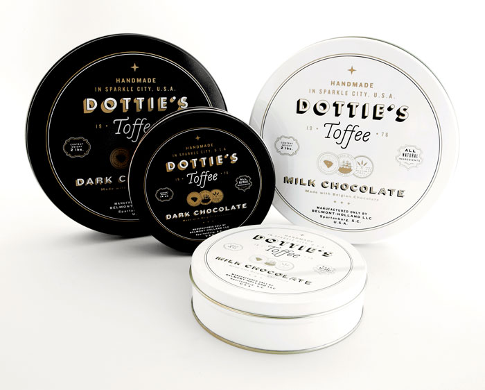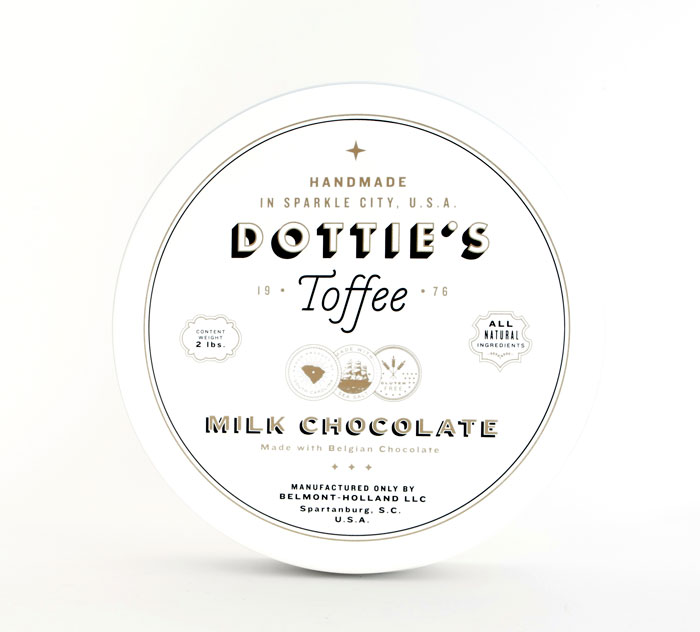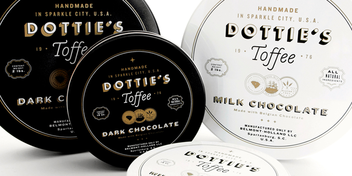“多蒂的太妃糖是一個(gè)慶祝一切熟悉的甜蜜。點(diǎn)開始制作自己的太妃糖1976和她愛(ài)她的手藝是會(huì)傳染的。她的孫子尼克進(jìn)行太妃糖制作傳統(tǒng)的這些天,他賣到全國(guó)范圍內(nèi)的零售商。我們創(chuàng)造了一個(gè)品牌是甜的,復(fù)雜多變的太妃糖本身既懷舊與當(dāng)代。明亮,過(guò)渡色對(duì)比的黑色,白色和灰色以及大膽,簡(jiǎn)單的文字定義的品牌在包裝,抵押和網(wǎng)站。